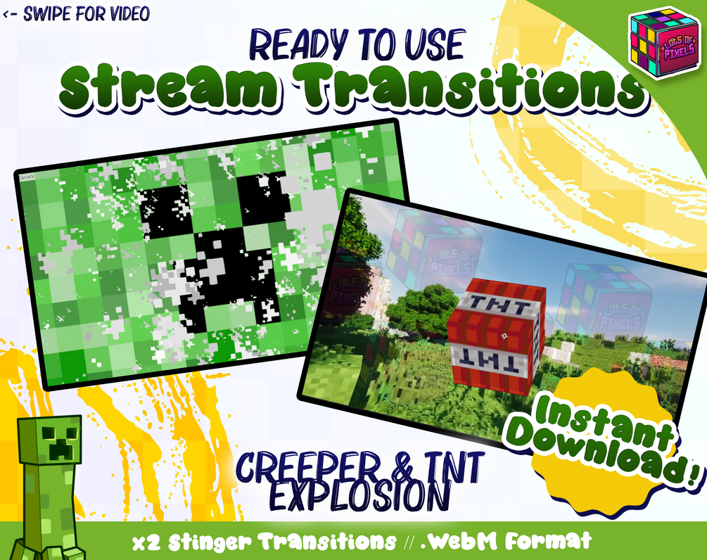 x2 Minecraft Creeper & TNT Explosion STRINGER TRANSITIONS Ultra Pack - For Streamers - Unique | Stream | Transparent Bg