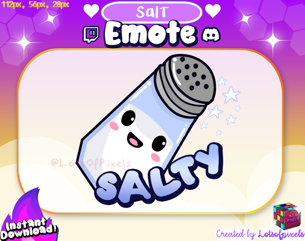 Twitch & Discord Emote - Salty Salt Shaker | Cute | Kawaii | Stream | Discord | Emoji • Instant Download •